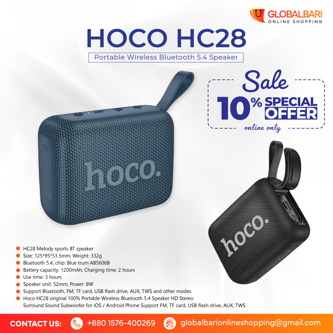 Whether you’re at home, on a trip, or hanging out with friends, the Hoco HC28 is your go-to Bluetooth speaker in Bangladesh for powerful performance and reliable connection.